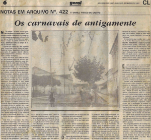 O material jornalístico funciona como um guia para compreender a transição do antigo “jogo do entrudo”, prática de arremessar limões de cheiro e água, que foi proibida há muitos anos, para o formato dos clubes carnavalescos, escolas de samba e blocos que conhecemos hoje.